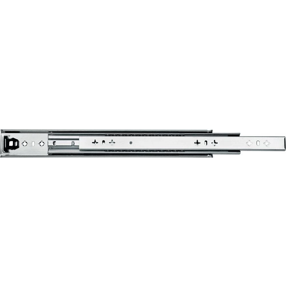 Centerline full-extension heavy duty drawer slides are solidly built to support loads of up to 220 pounds, these high-grade steel drawer slides offer smooth, quiet operation for some of your heaviest applications. A positive stop prevents drawers from accidentally rolling open, while the trigger disconnect allows for simple drawer removal. Mounting hole pattern is consistent with all 32mm systems for easy installation.