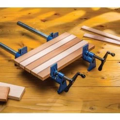 Tall jaws provide a full 2-1/4” of throat depth—a half-inch higher than typical pipe clamps! Sure-Foot base is a full 2-1/2” wide, which prevents the clamps from tipping over while tightening. Tall height of 3” from the bench to the bottom of the Acme screw means you can easily spin the handle without hitting your knuckles. Clamp hook on back allows easy wall hanging. Add the optional Sure-Foot Plus® Clamp Pads (#39897, sold separately) for added protection of your stock.