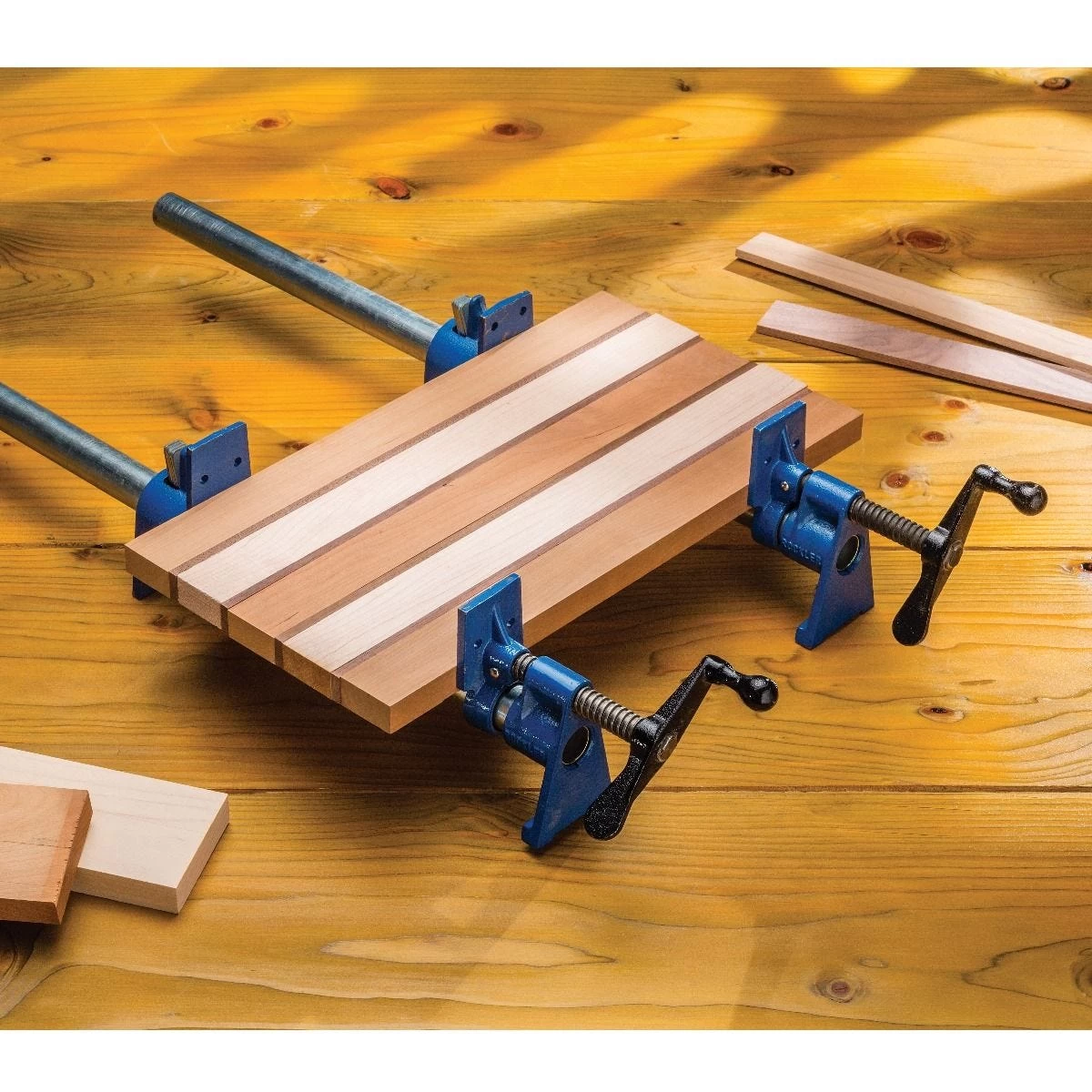 - Clamping face has pre-drilled holes for mounting pads, cauls, jigs and specialty fixtures